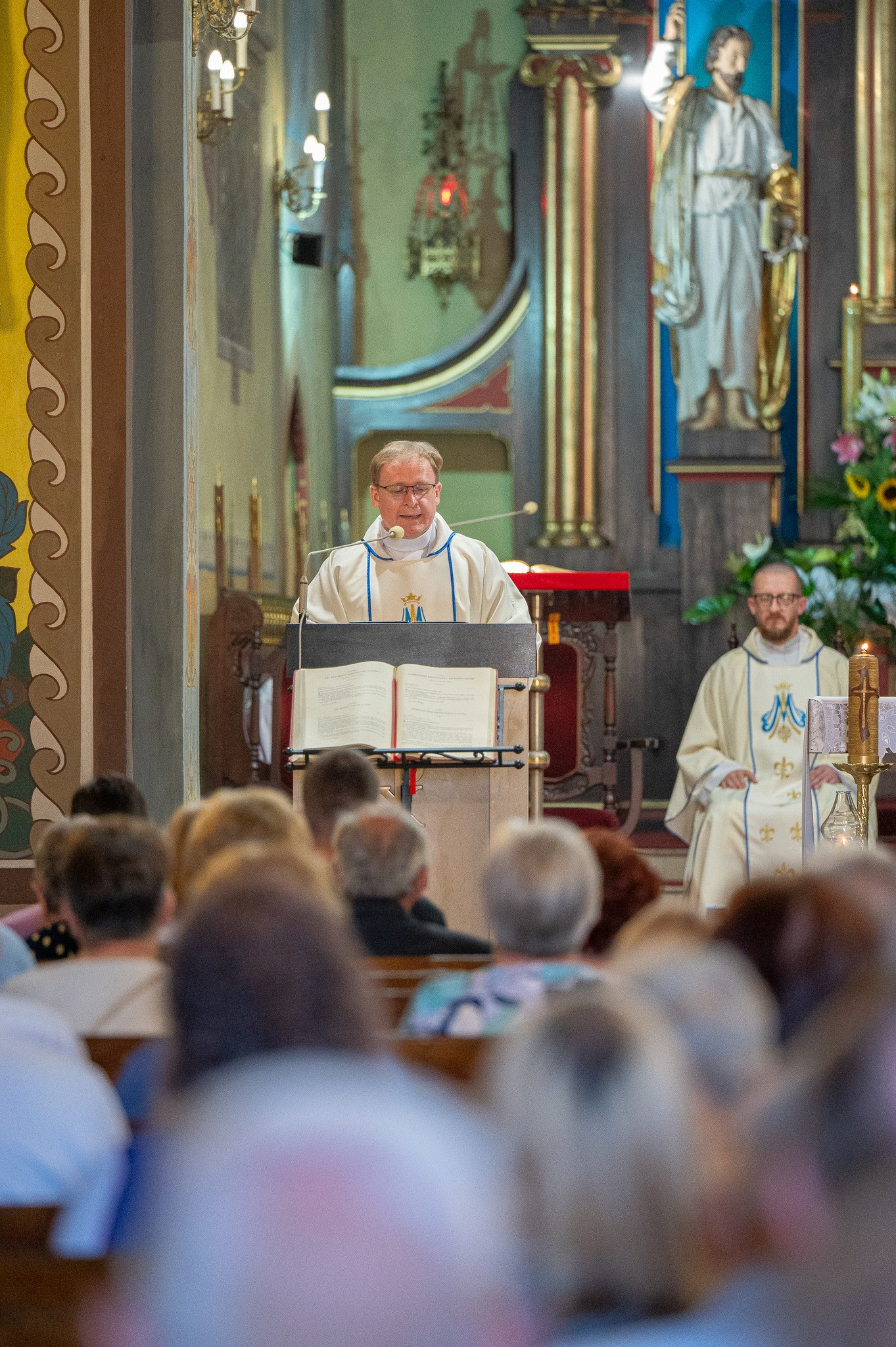 Koncelebrowanej Mszy Świętej odpustowej o godz.11:30 przewodniczył ks. Andrzej Tomalak, prof. WSD we Włocławku i Dyrektor Domu Księży Emerytów. Wraz z nami modlił się także ojciec Piotr Szymański SJ – nasz rodak. Procesja wokół świątyni oraz błogosławieństwo zakończyły tę ważną uroczystość. Wychodząc ze świątyni można było skosztować pysznego, odpustowego cukierka.