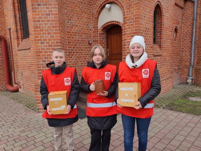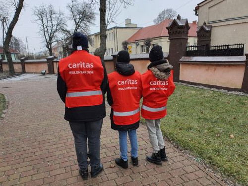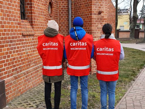 Zbiórka żywności środków czystości na rzecz schroniska dla bezdomnych we Włocławku prowadzonego przez Caritas